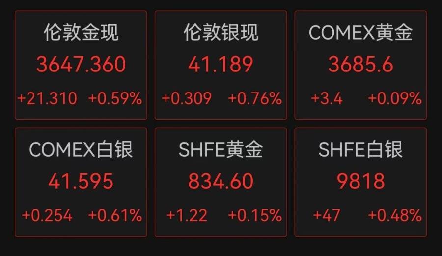 Wolfe Research从300美元大幅上调至400美元;Melius Research将目标股价从270美元上调至370美元;美银从295美元上调至368美元;瑞银集团从280美元上调至360美元;蒙特利尔银行从275美元上调至345美元;瑞穗证券将目标股价从300美元上调至350美元;德意志银行从240美元上调至335美元等。黄金上涨,加密货币超13万人被爆仓此外,现货黄金继续走强,截至23:00,涨约0.6%,白银也涨近0.8%。