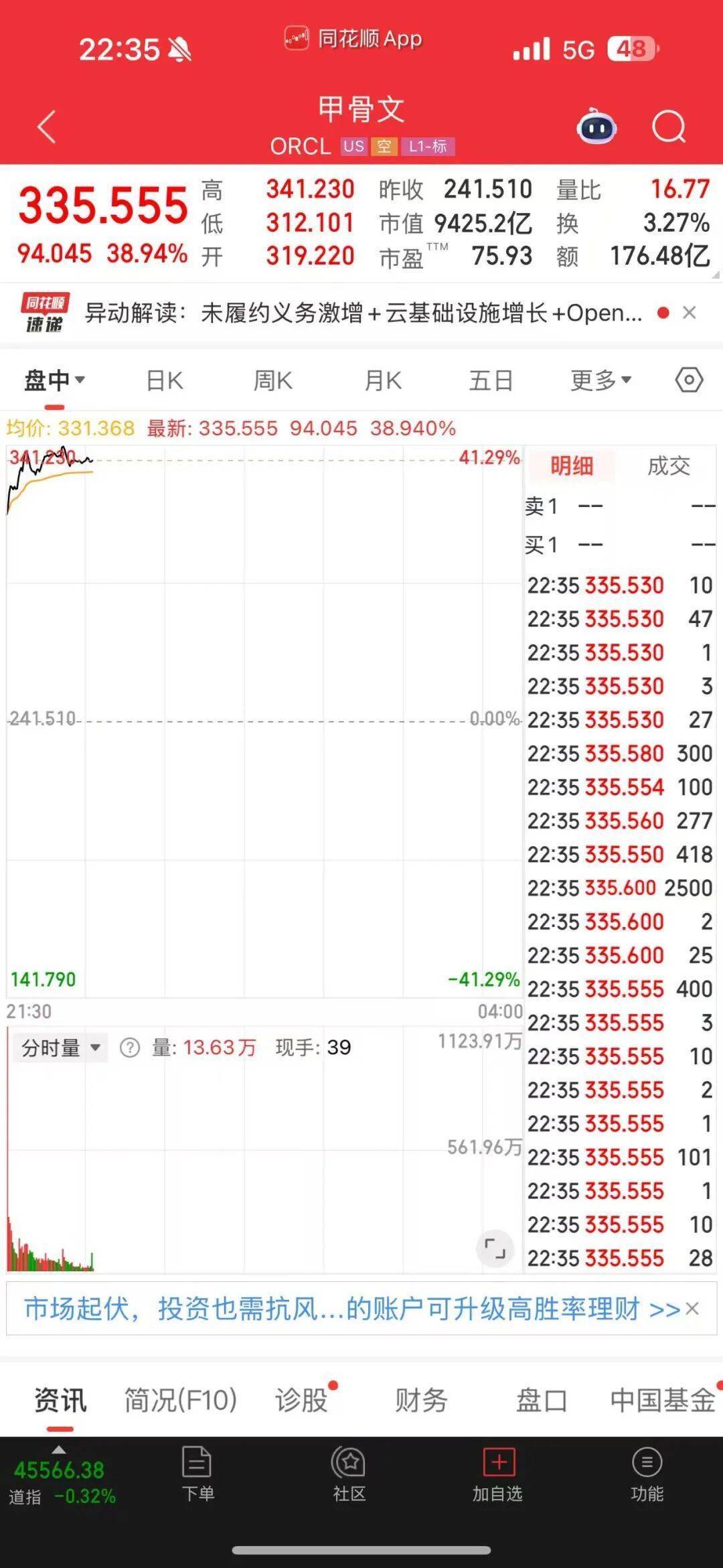 北京时间周三晚,甲骨文美股开盘直线拉升,大涨超40%,创下该公司自1999年以来最大单日涨幅。